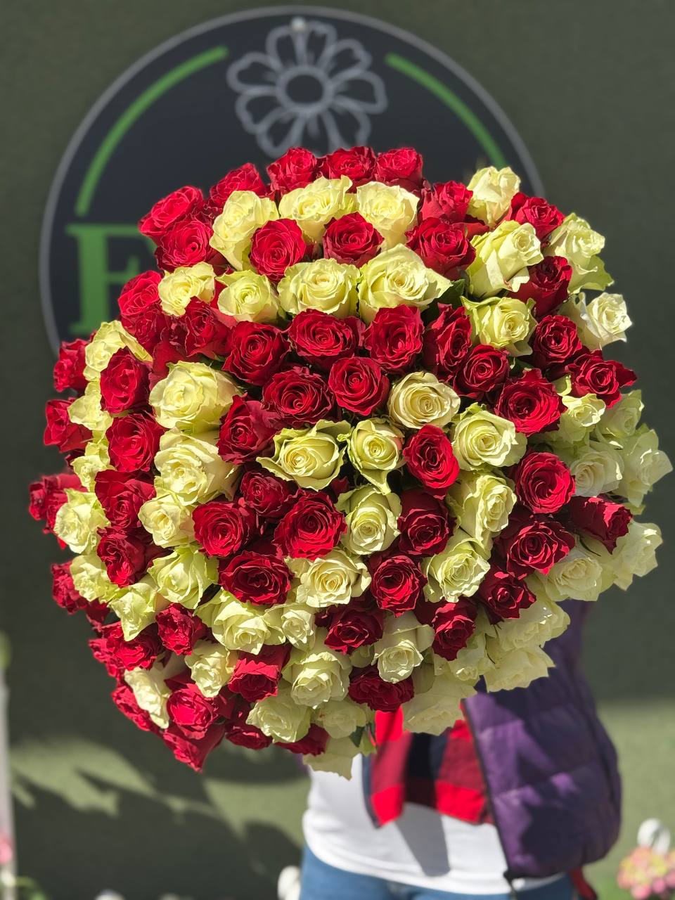 Червона троянда Родос(60см)-51шт Білих троянд Атена(60см)-50шт