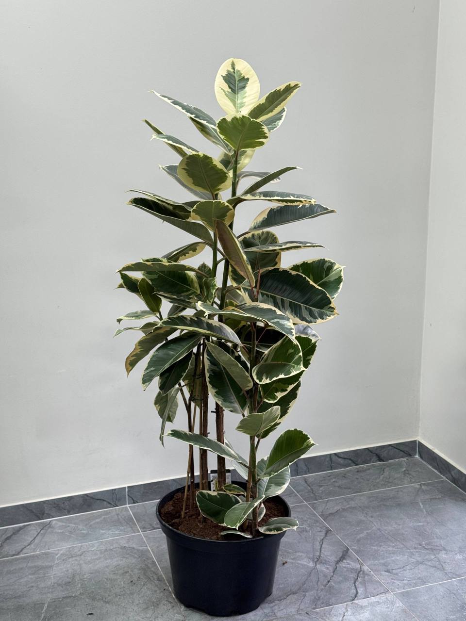 Класична кімнатна рослина з великим глянцевим листям овальної форми. Листові пластини щільні, шкірясті, насиченого темно-зеленого кольору з червонуватим відтінком молодого листя та центральною прожилкою. Компактне дерево з прямостоячим стовбуром, що з віком може розгалужуватися.