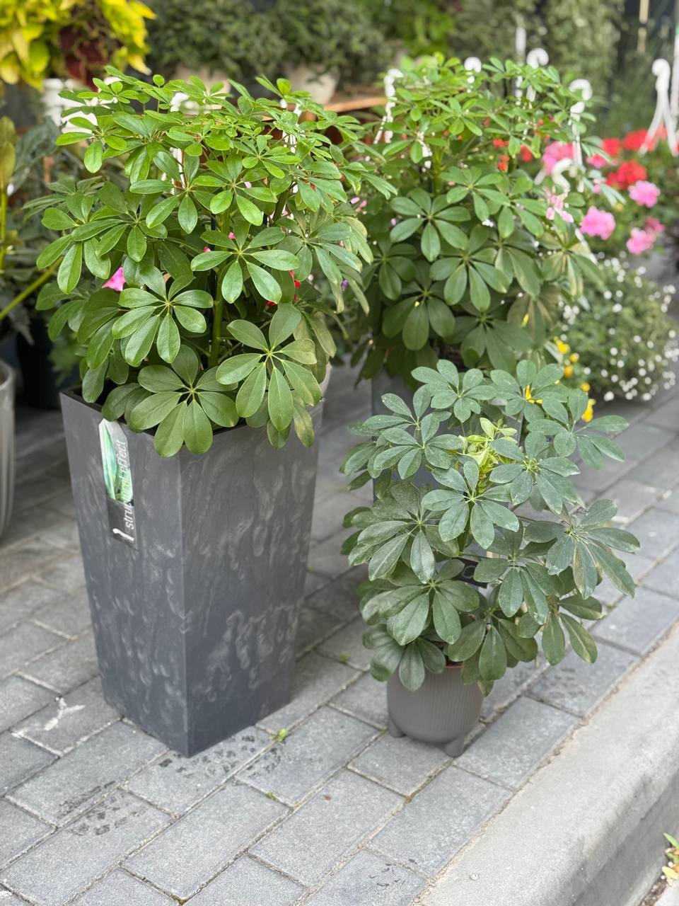 Компактний сорт шефлери з витонченим пальчасто-складним листям вузької форми. Листові пластини довгі, ланцетоподібні, з хвилястими краями, зібрані по 7-9 сегментів на одному черешку. Темно-зелений колір з глянцевою поверхнею. Крона густа, компактна, з елегантним силуетом.