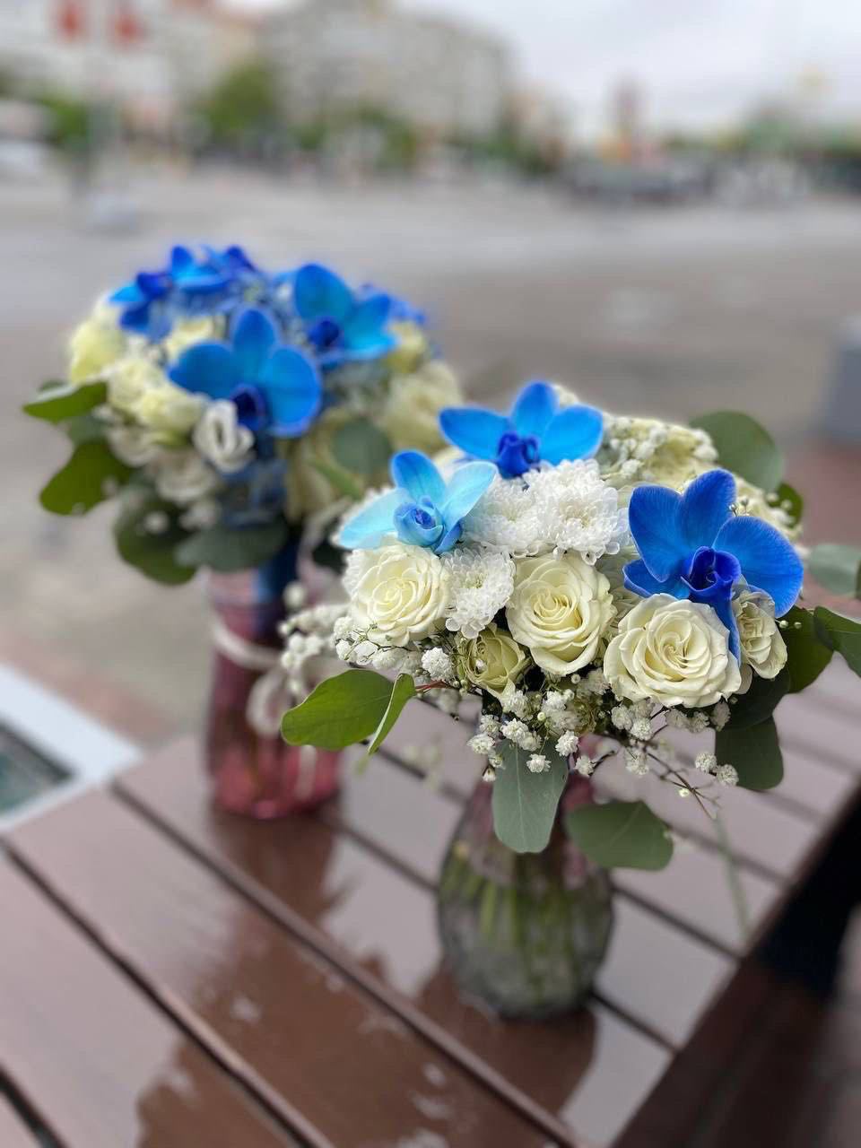Весільний букет із синіми орхідеями